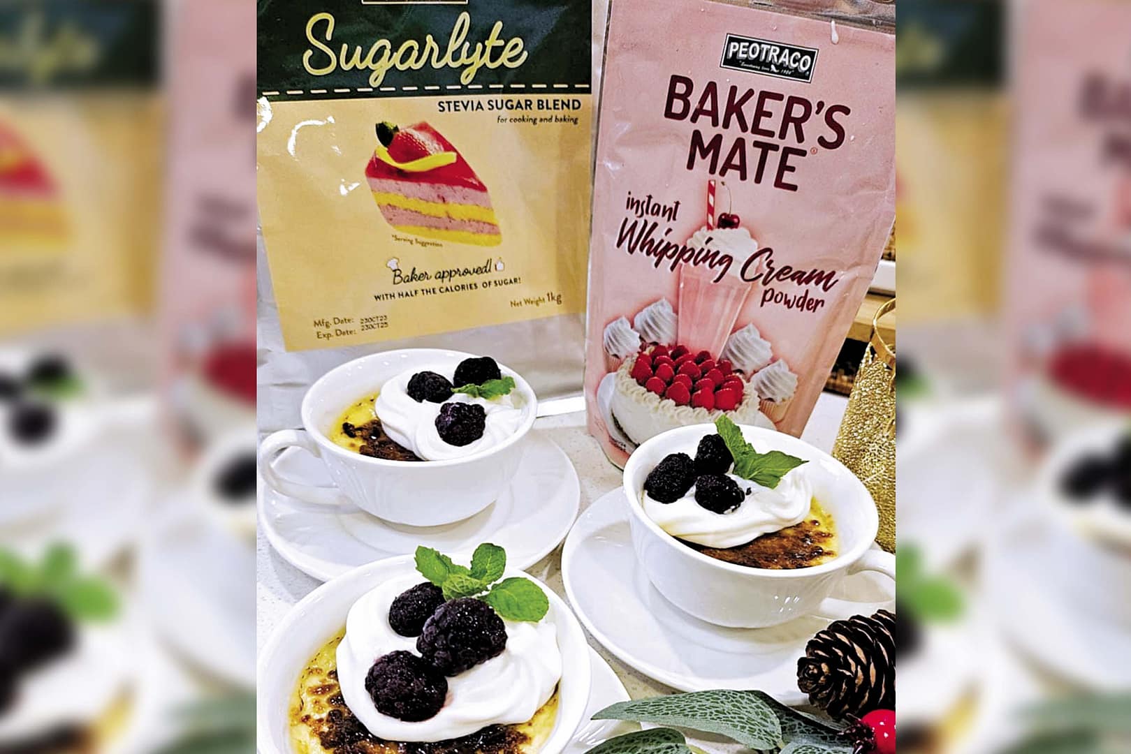 Sprinkle and evenly spread PEOTRACO MUSCOVADO Sugar on top of the creme brulee and torch it until it melts.